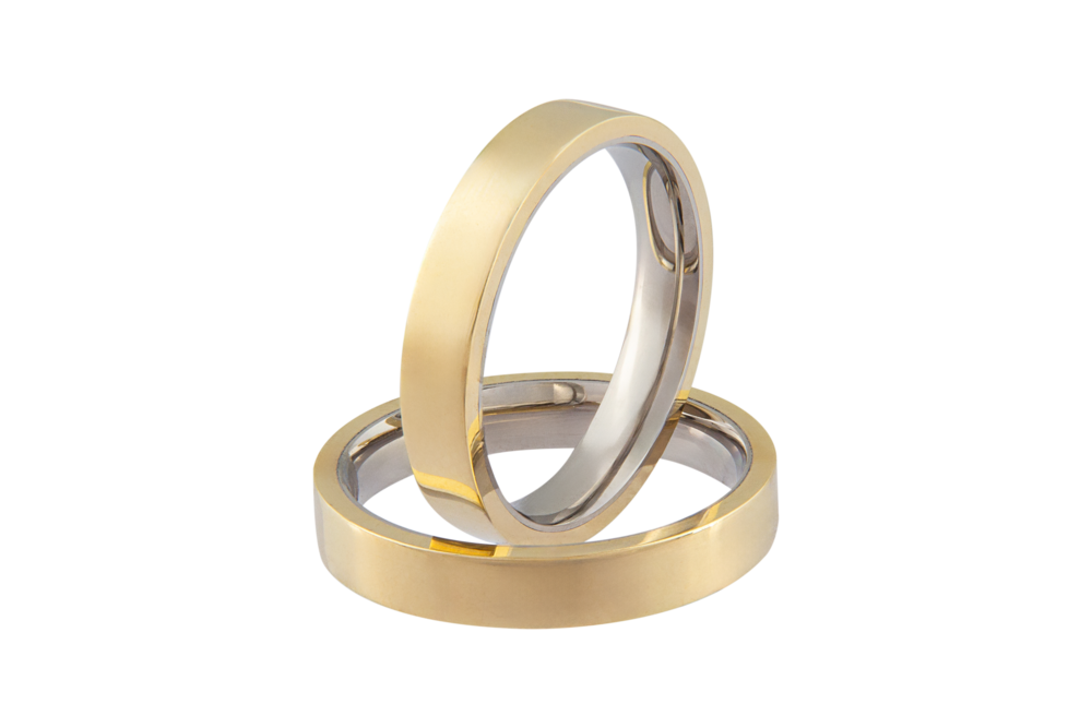 PAR ALIANÇA MOEDA ANTIGA COM PROTEÇÃO EM AÇO INOX RETA 4MM - MA4009