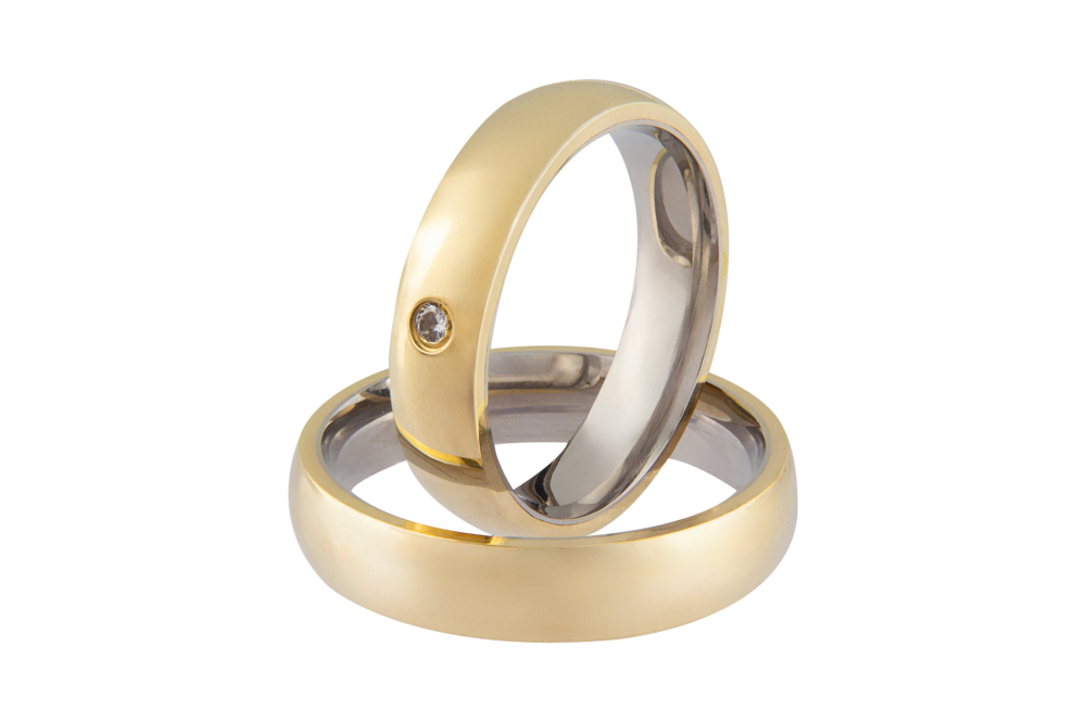 PAR ALIANÇA MOEDA ANTIGA PROTEÇÃO AÇO INOX ANATÔMICA 5MM COM ZIRCONIA 2MM - MA4001